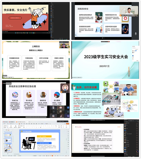 为保障学生暑期安全,确保安全意识不松懈,7月25日至7月29日,根据学校统一部署,全体二级学院先后召开“暑期安全教育”线上主题班会,聚焦学生交通出行、人身防护及实习实践安全等核心内容,为学生假期安全筑牢防线。 暑期是学生出行流动与实习实践的集中时段,各类安全风险隐患随之增多。班会上,辅导员重点强化实习实践安全管理要求:学生进入实习单位后,须第一时间熟悉安全通道与消防设施分布;操作环节中,必须严格遵守单位安全规程,特别是机械操作、电气设备使用等岗位,需在专人指导下规范作业,严禁擅自操作。同时,要做好个人健康防护,根据岗位特性落实防暑、防尘、防辐射等措施,合理调配作息避免过劳,遇突发情况及时与学校指导老师沟通,确保实习实践全程安全有序。 此次线上班会实现学生全覆盖。辅导员结合近年暑期学生溺水、交通意外、网络诈骗等典型案例,以真实案例剖析惨痛教训,系统讲解安全知识与应急处置方法,鼓励学生互动交流,确保安全意识入脑入心。学校通过此次专项教育落实安全主体责任,相关安全提示已精准传达到每一名学生,为学子平安度过暑期提供坚实保障。