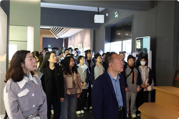 仪式结束后,师生跟随讲解员走进革命烈士史迹陈列室。从大革命时期的烽火岁月到抗美援朝的英雄赞歌,一件件斑驳的文物、一幅幅珍贵的影像,生动再现了先烈们为民族独立与人民解放浴血奋战的壮阔历程。”在时空交错的幻觉中,师生们仿佛穿越到了那段峥嵘岁月,亲眼见证着先烈们用热血书写的英雄史诗。那些凝固在展品里的坚定目光、染血的战衣、残破的旗帜,无不在诉说着信仰的力量,让大家从心底升腾起深切的敬意与感动。