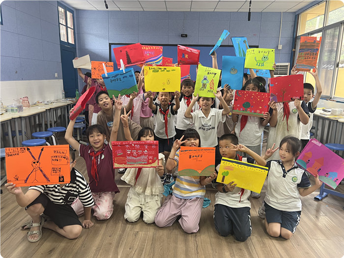 音乐与美术的融合教学,对我而言也是一次全新的挑战。这周,我带着孩子们制作了美术档案袋。我们用卡纸亲手制作袋子,并在封面和背面画画。那一刻,仿佛重回大学时代做手工、画画的时光。当作品完成时,每个人脸上都洋溢着喜悦。