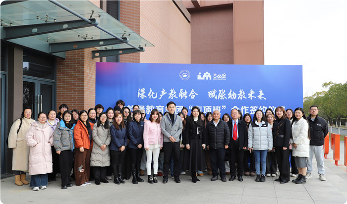 2026年1月4日上午,上海思博职业技术学院与吉的堡教育集团在学校学术报告厅隆重举行校企合作专项班签约仪式。本次活动以“深化产教融合,赋能幼教未来”为主题,标志着双方在协同育人、资源共享方面迈出实质性一步,共同开启学前教育人才培养新篇章。
