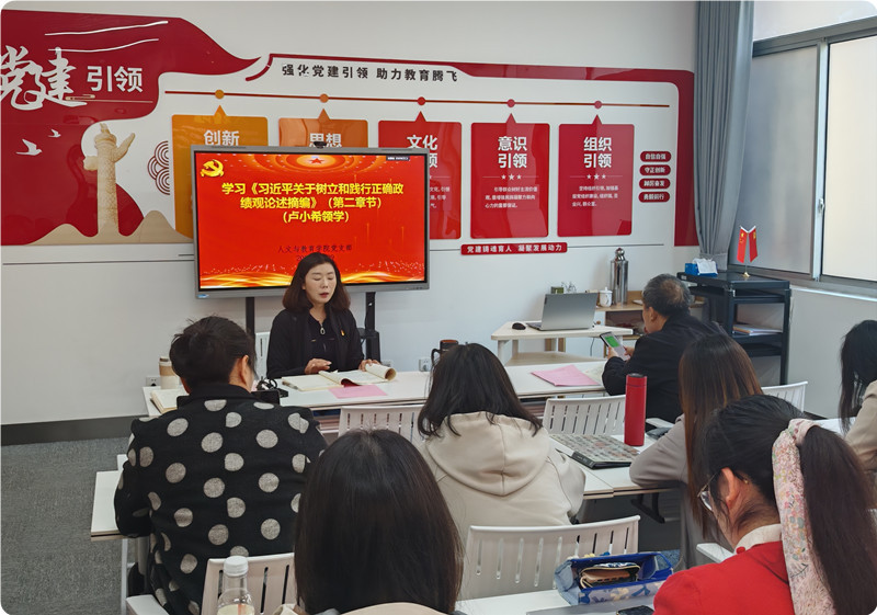 党支部副书记卢小希随后领学了《习近平关于树立和践行正确政绩观论述摘编》第二章,围绕“党性是决定性作用”这一主题,带领大家学习了习近平总书记在不同时期的重要讲话。她强调,理想信念是共产党人的精神之钙,党员干部要正确处理公私关系,摒弃私心杂念,说老实话、办老实事、做老实人,以党性立身做事,永葆政治本色。